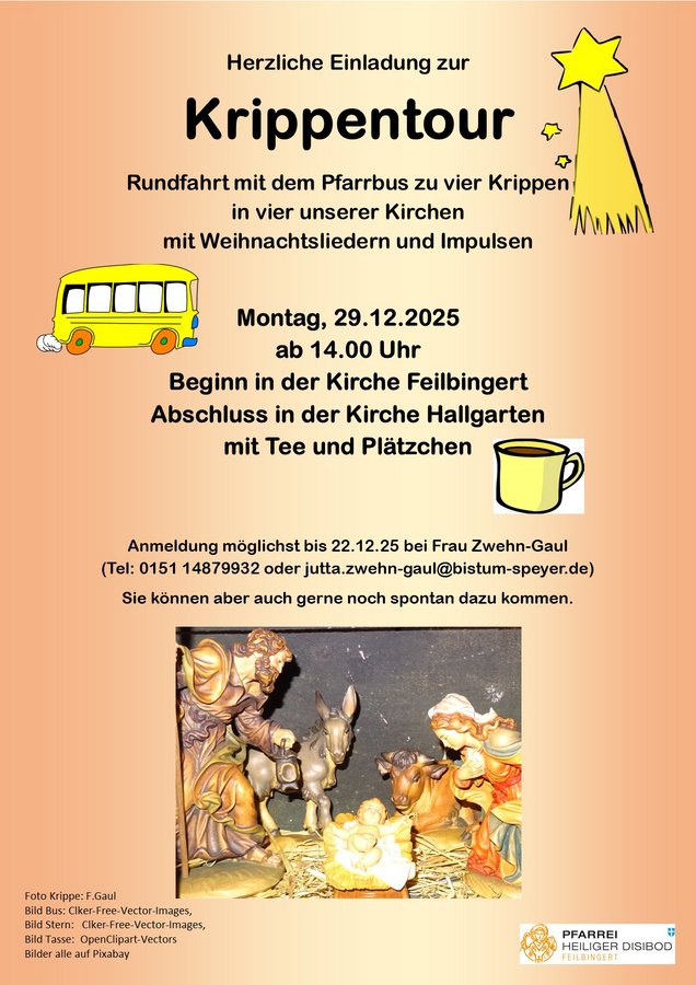 Start ist am Montag, 29.12.2025 um 14.00 Uhr an der Krippe in der Kirche in Feilbingert.