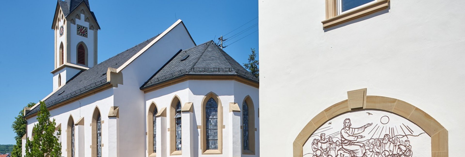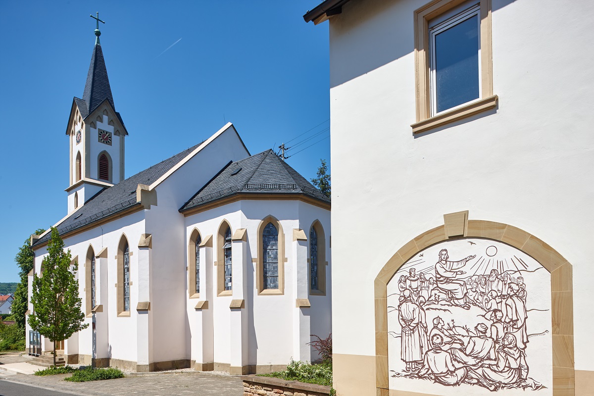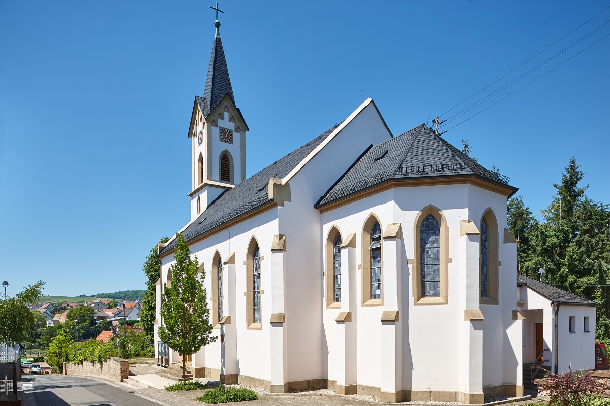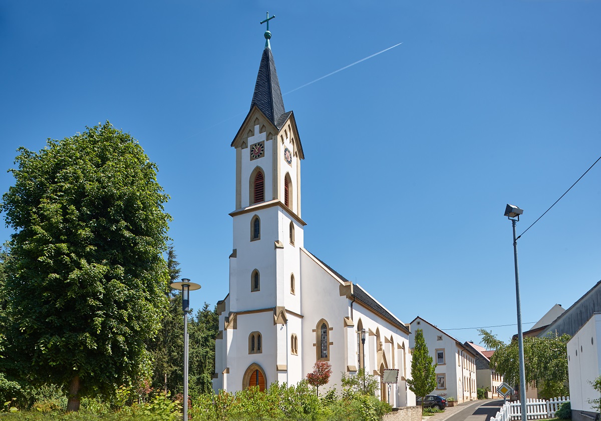 Sie wurde 1868 erbaut und 1883 eingeweiht. Drei Glocken, Orgel mit 16 Registern, etwa 100 Sitzplätze. Die Kirche gehört zur Pfarrei Feilbingert- Heiliger Disibod im Dekanat Donnersberg. Öffnungszeiten: täglich von 8 bis 18 Uhr.